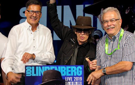 Der Panikrocker ist mit 73 Jahren immer noch in Bestform und dies galt es zu würdigen: gemeinsam mit Hans-Peter Haag (Music Circus Concertbüro Stuttgart), Fabian Schulte-Terboven und Lennert Markwort von Think Big überreichte Jörg Klopfer (Unternehmenssprecher der in.Stuttgart Veranstaltungsgesellschaft) dem Sänger einen Sold Out-Award der Hanns-Martin-Schleyer-Halle. Bereits 2012 und 2017 wurde Udo Lindenberg im Hallenduo für sein erstaunliches Lebenswerk ausgezeichnet: „Wir freuen uns, Udo Lindenberg den dritten Sold Out-Award zu überreichen. Mit seinen Songs löst er bei seinen Fans keine Panik, sondern Begeisterung aus“, zeigt sich Jörg Klopfer begeistert.