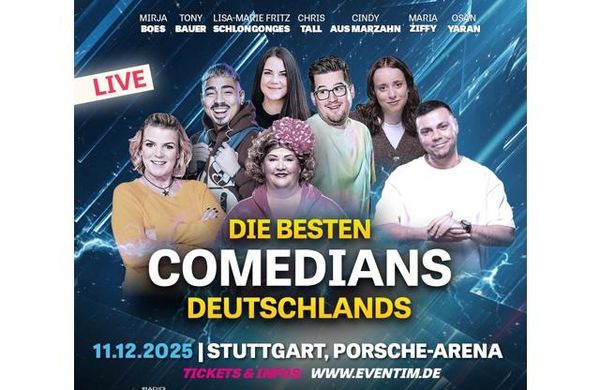 Geballte Comedy-Power Live on Stage am 11.12.25 in der Porsche-Arena Stuttgart mit Chris Tall, Cindy aus Marzahn, Tony Bauer, Mirja Boes, Osan Yaran, Maria Ziffy und Schlongonges.