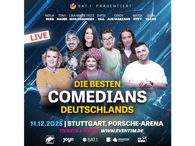 Präsentiert von SAT1 schicken Starwatch und Brainpool Live das Erfolgsformat DIE BESTEN COMEDIANS DEUTSCHLANDS aus dem TV auch 2025 wieder auf die große Live-Bühne. Nach dem großen Erfolg in Hamburg, Hannover und Berlin geht es nun mit noch mehr Tourterminen und neuem Line-Up weiter für das beliebte Format, bekannt aus dem TV.